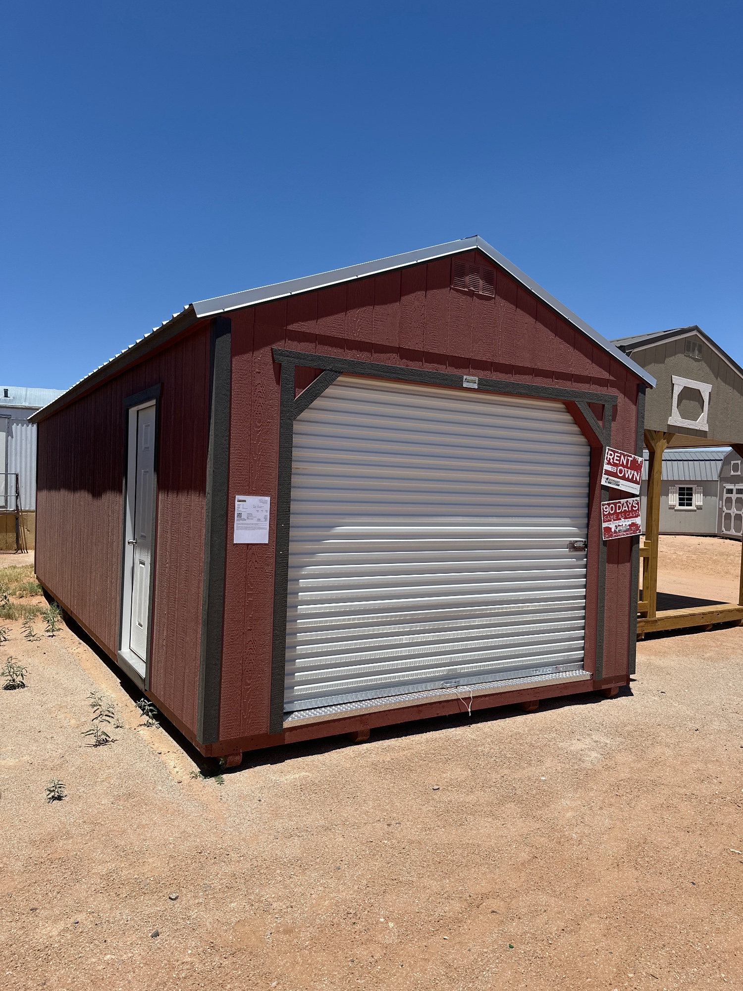 We proudly sell Old Hickory Buildings & Sheds! Our sales lot in Chaparral, NM offers a wide variety of portable buildings and sheds for sale, including Storage Barns, Lofted Barns, Utility Sheds, Portable Buildings, Mini Barns, Garages, Animal Shelters, Playhouses, Cabins, Single Slope Sheds, Sheds with Porches, Sheds with Dormers, and more. We can sell and deliver sheds directly from our location, or if you don’t find the exact portable building or shed you want…we can work with you to create a custom building using the Old Hickory 3D Builder!