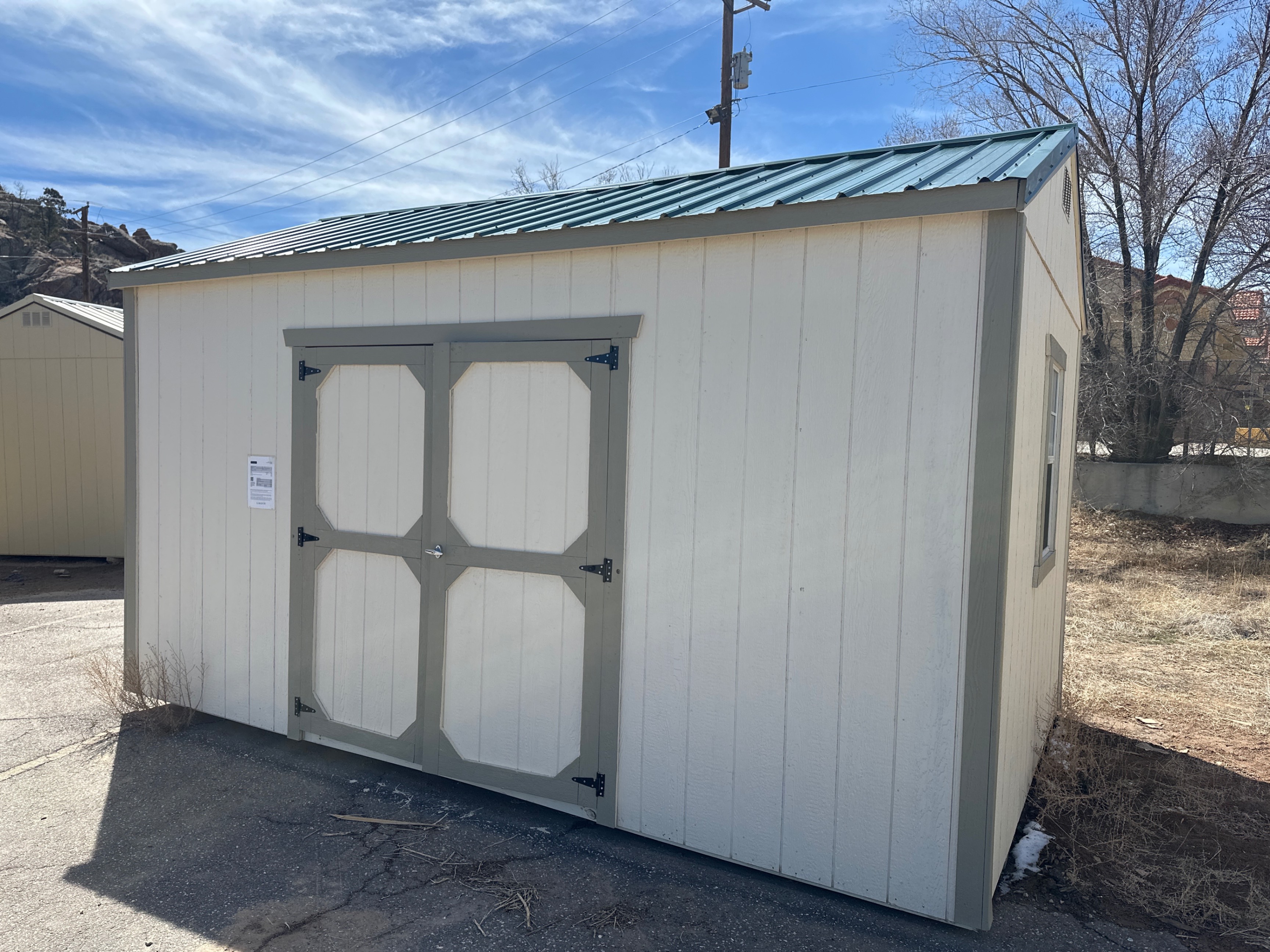 We proudly sell Old Hickory Buildings & Sheds! Our sales lot in Gallup, NM offers a wide variety of portable buildings and sheds for sale, including Storage Barns, Lofted Barns, Utility Sheds, Portable Buildings, Mini Barns, Garages, Animal Shelters, Playhouses, Cabins, Single Slope Sheds, Sheds with Porches, Sheds with Dormers, and more. We can sell and deliver sheds directly from our location, or if you don’t find the exact portable building or shed you want…we can work with you to create a custom building using the Old Hickory 3D Builder!