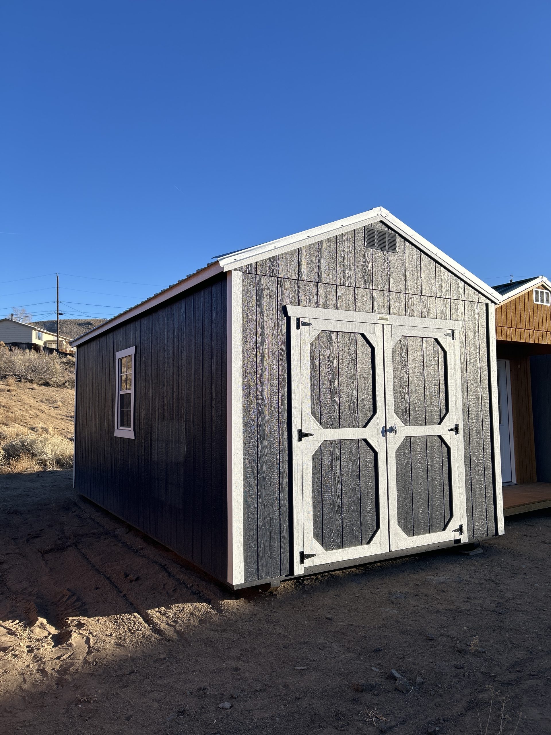 We proudly sell Old Hickory Buildings & Sheds! Our sales lot in Reno, NV offers a wide variety of portable buildings and sheds for sale, including Storage Barns, Lofted Barns, Utility Sheds, Portable Buildings, Mini Barns, Garages, Animal Shelters, Playhouses, Cabins, Single Slope Sheds, Sheds with Porches, Sheds with Dormers, and more. We can sell and deliver sheds directly from our location, or if you don’t find the exact portable building or shed you want…we can work with you to create a custom building using the Old Hickory 3D Builder!