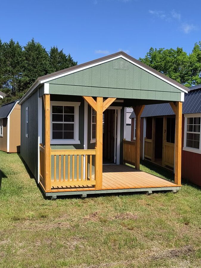 The Deluxe Playhouse is the ultimate package for creating an outdoor recreational space, DIY studio or home office. It includes a 9-lite walk-in door, five 2x3ft single-pane windows (3 in the bay front), four porch posts and three sections of porch railing. The Utility version includes 8ft walls. This package requires a minimum shed size of 12ft x 24ft.